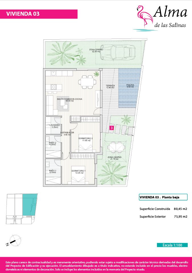 Viviendas unifamiliares adosadas “Alma de las Salinas” tipo bungalow, con vistas panorámicas al campo verde y al mar Mediterráneo. Un exclusivo complejo de 6 viviendas, ubicado en San Pedro del Pinatar, Murcia, a pocos metros de Lo Pagán y las playas del Mar Menor. Estas elegantes viviendas de diseño moderno ofrecen el equilibrio perfecto entre confort y privacidad, con amplios espacios, acabados de alta calidad y una distribución funcional. Cuatro de los bungalows cuentan con piscina individual, mientras que todos disponen de plaza de aparcamiento, garantizando así máxima comodidad. Situados en una zona privilegiada cerca de las salinas y el mar, estos bungalows son ideales para disfrutar del clima mediterráneo todo el año. ¡No pierda esta oportunidad única y programe su visita hoy mismo!