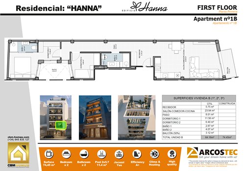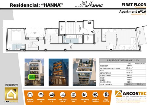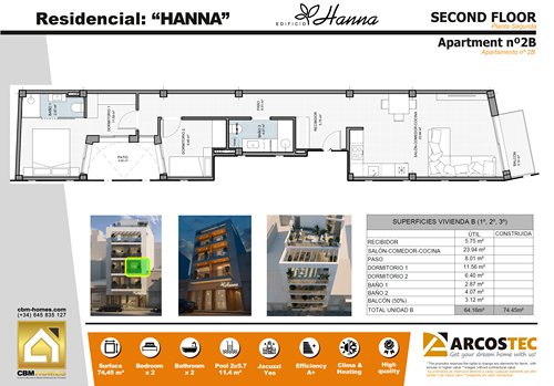 Welcome to the residential complex “Hanna”, an exclusive development of seven modern apartments with 2 or 3 bedrooms and two commercial premises on the ground floor, located in the very center of Torrevieja, just a few steps from Playa del Cura. Strategically located in a highly frequented, prime central area, it offers excellent visibility and convenience, surrounded by shops, restaurants, and all essential services. This contemporary-designed building combines elegance, functionality, and a prime location. Enjoy shared amenities all year round, including a swimming pool, jacuzzi, and a rooftop solarium with chill-out areas and greenery. Living at “Hanna” means having the beach, leisure options, and services within easy reach—without giving up peace and tranquility!